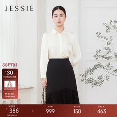 JESSIE简约知性长袖小上衣女100%桑蚕丝春新款显瘦职场衬衫光泽感