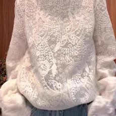 韩系超仙刺绣蕾丝立领设计套头衬衫女秋冬气质白色时尚钩花新上衣