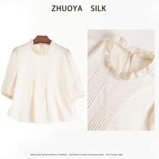 大牌香云纱真丝上衣夏季桑蚕丝短款妈妈上装2025新品气质翻领衬衫