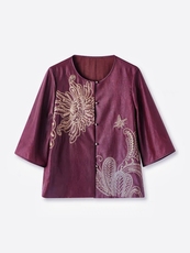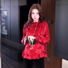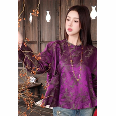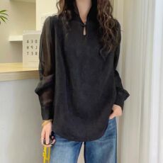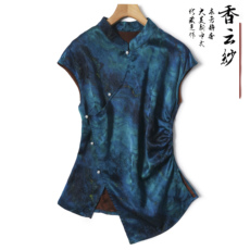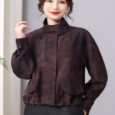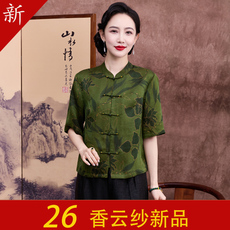 2025春装新款香云纱上衣女高端桑蚕丝国风立领复古洋气衬衫妈妈装