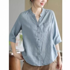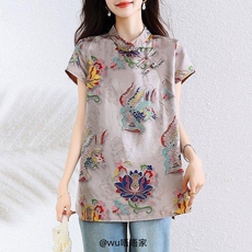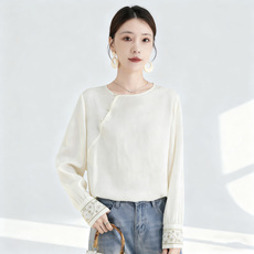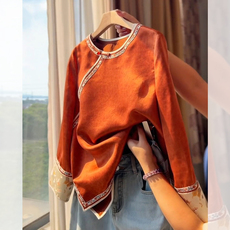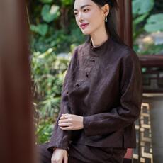 新中式国风真丝亚麻棉杏色衬衫上衣女2025早春季宽松减龄唐装外套