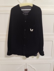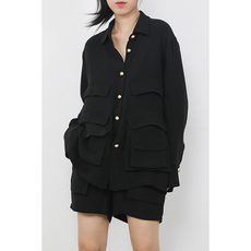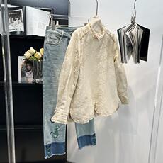 现货秒杀DI-SUI欧韩2025秋冬21121毛毡胸针木耳下摆松紧小衫衬衫