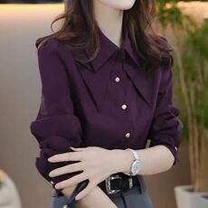 轻奢高级感复古紫色衬衫女秋冬2026新款内搭休闲通勤衬衣气质上衣