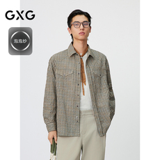 GXG男装 黑色pu皮简约时尚休闲衬衫外套男士24年秋品G24X033045