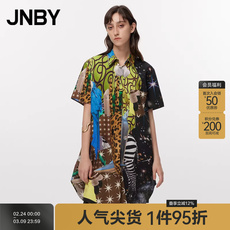 JNBY/江南布衣折扣春夏衬衫女宽松印花长款撞色多色上衣设计复古