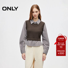 【ONLY奥莱】春款学院风针织马甲假两件设计翻领修身长袖衬衫女