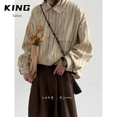 牛仔衬衫男2025春秋新款提花复古水洗翻领休闲大码300斤衬衣外套