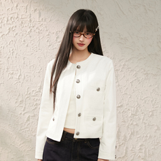 若语定制 bella穿搭 100棉金属扣牛仔短外套气质休闲简约早春上衣