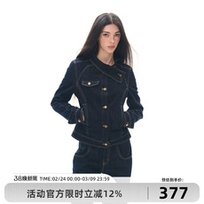 Goosfir 原创设计新款斜领扣修身显瘦收腰牛仔外套短款原牛色夹克