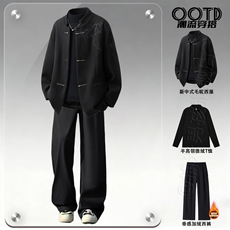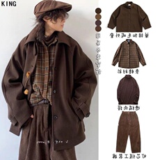 冬季日系穿搭整套美拉德复古单排扣呢子大衣男宽松插肩袖毛呢外套