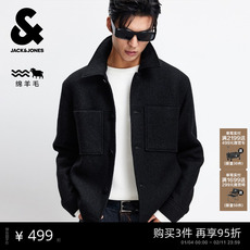 杰克琼斯秋冬新款质感纯羊毛外套短款毛呢大衣男装225427005