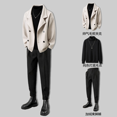 毛呢夹克男短款秋冬高级感痞帅西装领呢子外套男士冬装搭配一整套