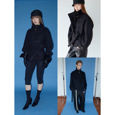 FUNKYFUN 手缝古铜色纽扣牛角扣廓形中长款绑带立领毛呢大衣外套