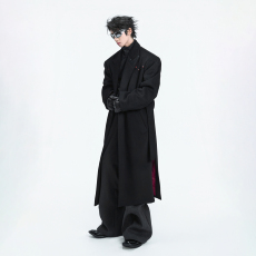 Med老叔 原创小众黑色廓形大衣男质感中长款风衣cleanfit毛呢外套