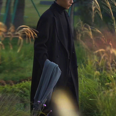 纯羊毛双面呢大衣男士 中长款过膝双面羊绒外套 西装领毛呢子风衣