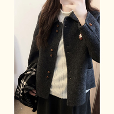 2025秋冬新款小香风外套女短款圆领单排扣宽松显瘦羊毛呢外套女