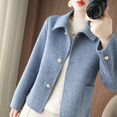 2025秋冬新款双面羊绒大衣女短款小个子韩版宽松西装领羊毛呢外套