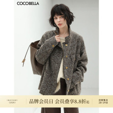 COCOBELLA静奢风珠片花纱毛呢外套女立领短款廓形小香风西装WL507