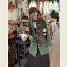 极简风秋叶黄毛呢西装外套女小个子中长款气质百搭通勤呢子上衣