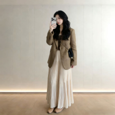 Maven Lin 挺括立裁 1OO羊毛圆领毛呢外套女优雅直筒半身裙套装