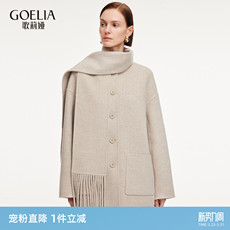 【明星同款】popchrio立领含驼绒双面呢羊毛大衣中长款毛呢外套女
