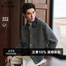 【羊毛】太平鸟男装拼接毛呢小香风夹克巴恩风行政通勤翻领外套