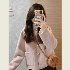 2026年小香风双面羊绒大衣女短款气质韩版圆领羊毛呢外套百搭新款