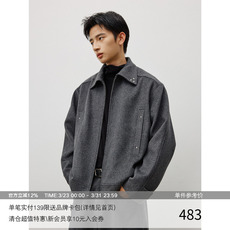 UrbanStandard日系复古美拉德毛呢外套男秋宽松翻领机车夹克外套