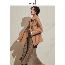 MULVAN【现货8折】设计感毛呢外套女短款收腰气质西装呢子大衣