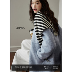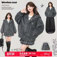 KEIKO 学院风海军领短款羊毛呢外套早春气质减龄字母绣花短绒大衣