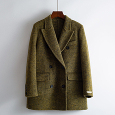 韩版复古杂绿色毛呢西装大衣女秋冬季新款高级感宽松休闲呢子外套