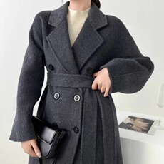 洛边“花瓶腰”羊毛毛呢大衣双面宽松中长过膝百搭呢子外套双排扣