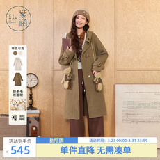 MB MindBridge2025年学院风牛角扣毛呢大衣冬季女连帽羊毛外套