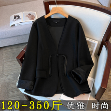 新中式国风黑色西装外套女正肩特大码200斤胖mm春秋V领小西服上衣