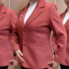 玫而美外套女长袖西装领修身小香风通勤职业一粒扣春秋小西装上衣