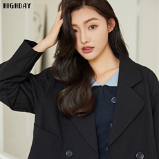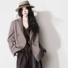 水云间黑色短款小西装外套女廓形宽肩西服小个子酷飒风2026春新款