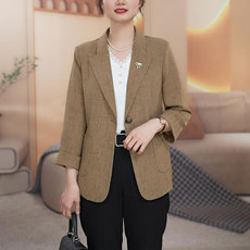 水云间极简亚麻小西装外套女士七分袖西服老钱风上衣2026夏季新款
