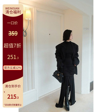 Basic House/百家好黑色金丝绒西装外套女2026春季新款V领小西服