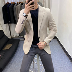 韩系气质垫肩小西服男免烫无痕单西便服休闲工装西装通勤正装外套