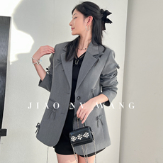 LILY秋新款女装时尚格雷系立领高级感西装外套灰色短款小个子
