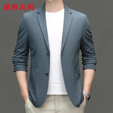 男式休闲西装2025春夏季微皱肌理感薄款单西纯色西装领男装小西装