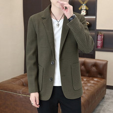 春季千鸟格西装男修身男士外套休闲单件格子小西服2025新款男装潮