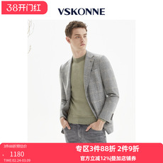 VSKONNE威斯康尼休闲西服男意大利VBC羊毛法兰绒藏青小西装外套男