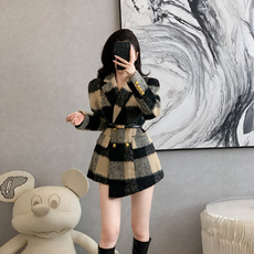 经典故事夹棉格纹西装外套女秋款2025新款通勤别致修身西服小个子