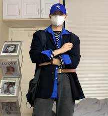 韩国男士休闲小西装外套韩版东大门潮流西服秋季宽松黑色单西上衣