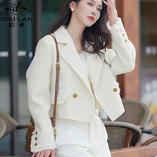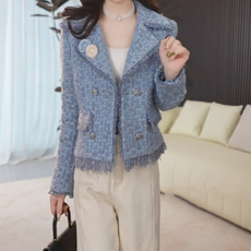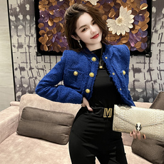小香风短款外套女秋冬季2026新款小众西装加厚小个子蓝色高腰上衣