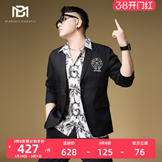 2025春秋新款印花西服外套修身男士个性一粒扣韩版潮小西装单外套