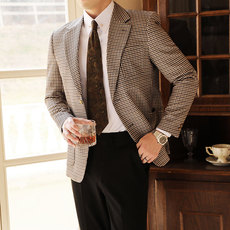 复古毛呢西装外套男高质感加厚保暖呢料小西服秋冬休闲意式小西装