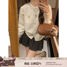 DDXZ夕子减龄百搭针织开衫时髦设计感短款小香风别针圆领珍珠毛衣