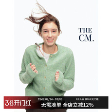 countrymoment羊毛混纺复古圆领针织开衫外套春绿色毛衣女上衣服